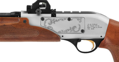 პნევმატური თოფი , თურქული წარმოების , კალ. 4,5 მმ , წონა – 3.9 კგ , ლულის სიგრძე – 585 მმ , სრული სიგრძე – 1075 მმ , სიჩქარე – 360 მ/წ